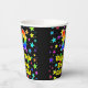 This fun and colourful birthday paper cup design features a large number “10” with a rainbow spectrum gradient inspired pattern, along with the message “Happy 10th Birthday,”, and an editable name. The background features an exciting and colourful pattern featuring many star shapes with different colours and sizes. Colourful, vibrant paper cups like this might be fun to have at a birthday party being held to honour somebody’s 10th birthday. [~Z0000540]