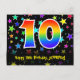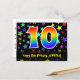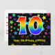 10th Birthday: Fun Stars Pattern, Rainbow 10, Name Postcard