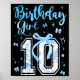 10th Birthday Girl Blue Toile Coquette Bow 10 Year Poster
