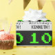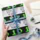 This fun and nerdy birthday themed wrapping paper design features a large green vintage video gaming style number "10" on a black coloured background. It also features the birthday greeting message "Happy 10th Birthday,", and a personalised name. Birthday themed wrapping paper like this might be used when giving a gift or present in celebration of somebody’s 10th birthday. [~Z0000403]