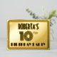 The front of this luxurious and 1920s-1930s style inspired tenth birthday celebration/party foil invitation card design features a custom name, a fancy art deco style inspired number “10th”, the message “BIRTHDAY PARTY”, and a multi-line border. The back features personalised details about the event, such as the date, time, venue, and any other information that may be useful. Elegant, stylish, personalised invitations like these might be used to invite attendees to a birthday party being held to celebrate somebody’s 10th birthday. [~Z0000594]