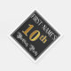 This luxurious and fancy birthday themed paper napkin design features a customisable name and the message “10th Birthday Party”. The large number “10th” has an imitation/faux gold-inspired colouring pattern, the words “Birthday Party” are in opulent script-style text, and the background is coloured black by default (although it can be customised). Elegant, ornate paper napkins like this might be useful to have at a birthday party/celebration being held in celebration of somebody’s 10th birthday. [~Z0000565]