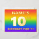 The front of this upbeat and vibrant tenth birthday party foil invitation card design features a customisable name, a large number “10th”, the message “BIRTHDAY PARTY!”, and a border. The background of the front features an eye-catching, multicolored, rainbow spectrum inspired gradient pattern. The back features personalised details about the event, such as the date, time, place/venue, and any other important information. Customised invitations like these might be a fun way to invite attendees/guests to a birthday party being held in celebration of somebody’s 10th birthday. [~Z0000599]