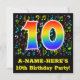 The front of this fun, colourful, and exciting birthday party invitation design features a large number "10" having a rainbow spectrum gradient inspired pattern. It also features a customisable name and the message "10th Birthday Party!". Part of the background features a fun and colourful music notes and symbols pattern. The back features editable information/details pertaining to the event that the potential guests are being invited to. Happy, editable birthday celebration invitation cards like this might be sent to potential guests of a celebration being held to honour somebody’s tenth birthday. [~Z0000427]