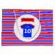 This 10th birthday gift bag is brightly coloured, and great for both boys and girls. Add the name of the birthday girl or boy to personalise it. The red birthday banner declares "BIRTHDAY" in black capital letters - or this too can be edited. The red and blue stripes match the striped tissue paper also available in the collection.