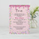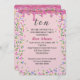 Dripping pink icing with colourful candy sprinkles for a 10th birthday party invite.
