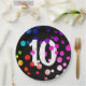 10th Birthday Rainbow Dots on Black Paper Plates