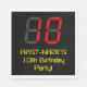 This fun and silly birthday themed paper napkin design features a large number "10" with a red seven segment digital display inspired appearance, along with a personalised name and the message "10th Birthday Party!" in nerdy yellow text, on a black coloured background. Fun, personalised paper napkins like this might be used at a birthday party being held to celebrate somebody’s 10th birthday. [~Z0000388]