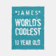 10th Birthday World's Coolest 10 Year Old Teal G20 Teal and White. It's BIRTHDAY time....Let's CELEBRATE! This design with its trendy grunge stars and text and a spot to personalise with a name and birthday year is a fun way to start the party!