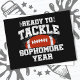 This fun sophomore year design is perfect for a high school sophomore football player or 10th grade teacher that loves to support their high school football team! Perfect for back to school, 9th grade graduation or all school year long! Features 'Ready To Tackle Sophomore Year' high school sophomore quote w/ football graphic. Great for a 10th grader or tenth grade teacher that loves to watch or play football!