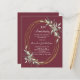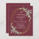 A merlot, burgundy background. Decorated with greenery and a golden oval frame. Personalise and add a name and details.