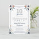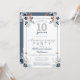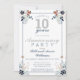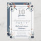 Celebrate your 10th wedding anniversary with this Cheers to 10 years wedding anniversary party invitation. This design features a soft and pretty silver and blue theme with colourful floral accents in shades of blue and orange. The back of the wedding anniversary party invitation has a dark blue background with pretty floral bouquets i each corner. Mix and match with other items in this charming tenth anniversary wedding collection.
