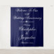 10th Or Any Wedding Anniversary Cool Chic Personalised Elegant Photo Booth Backdrop. Elegant White Script personalised on a simple classic Navy Blue Welcome Tapestry Backdrop, Reception Banner, or use as a Photo Booth Backdrop. Click personalise this template to customise the Backdrop