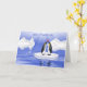 Fun anniversary greeting with two Penquins floating of Ice surrounded by icebergs in the artic. Graphic. Available in