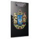 Introducing project “World Heraldry 3D” collection by C.7 Design Studio, showcasing top quality unique heraldry designs. Here you will find fully customisable products, featuring greater coat of arms of Ukraine. Ukraine (Ukrainian: Україна) is a country in Eastern Europe. Ukraine borders Russia to the east and northeast, Belarus to the northwest, Poland, Slovakia and Hungary to the west, Romania and Moldova to the southwest, and the Black Sea and Sea of Azov to the south and southeast, respectively. It has an area of 603,628 km2 (233,062 sq mi), making it the largest country entirely within Europe. The territory of Ukraine was first inhabited at least 44,000 years ago, with the country being a candidate site for both the domestication of the horse and for the origins of the Indo-European language family. Ukraine has long been a global breadbasket due to its extensive, fertile farmlands. Additionally, the country has a well-developed manufacturing sector, particularly in the area of aerospace and industrial equipment. Ukraine is a unitary state composed of 24 oblasts (provinces), one autonomous republic (Crimea) and two cities with special status: Kiev, its capital and largest city and Sevastopol, which houses the Russian Black Sea Fleet under a leasing agreement. Ukraine is a republic under a semi-presidential system with separate legislative, executive, and judicial branches. Since the dissolution of the Soviet Union, Ukraine continues to maintain the second-largest military in Europe, after that of Russia, when reserves and paramilitary personnel are taken into account. The country is home to 44.6 million people, 77.8% of whom are ethnic Ukrainians, with sizeable minorities of ethnic Russians (17%), Belarusians, Tatars and Romanians. Ukrainian is the official language of Ukraine; its alphabet is Cyrillic. Russian is also widely spoken. The dominant religion in the country is Eastern Orthodox Christianity, which has strongly influenced Ukrainian architecture, literature and music. The state coat of arms of Ukraine (Ukrainian: Державний Герб України) or commonly the Tryzub (Ukrainian: Тризуб, "trident") is the national coat of arms of Ukraine, featuring the same colours found on the Ukrainian flag; a blue shield with gold trident, called the tryzub, which means "three teeth." It means the triune God on earth and in heaven. It appears on the Presidential standard of Ukraine. Blue coloured tridents are considered to be irregular representation by the Ukrainian Heraldry Society. The small coat of arms was officially adopted on 19 February 1992, while constitutional provisions exist for establishing the great coat of arms, which is not yet officially adopted. The small coat of arms was designed by Andriy Grechylo, Olexiy Kokhan and Ivan Turetskyi. It is a representation of the seal-trident of Vladimir the Great. The trident was not thought of as a national symbol until 1917, when one of the most prominent Ukrainian historians, Mykhailo Hrushevsky, proposed to adopt it as a national symbol (alongside other variants, including an arbalet, a bow or a cossack carrying a musket, i.e. images that carried considerable historical and cultural and heraldic significance for Ukraine). On 22 March 1918, the Central Rada (parliament) adopted it as the coat of arms of the short-lived Ukrainian People's Republic. During the Soviet period of 1919-1991 the state symbols were consistent with the Russian SFSR and the Soviet Union - Sickle and Mallet over the rising sun.