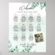 Modern botanical greenery emerald foliage leaves with gold accents, themed wedding table seating chart. Add your own couples photo and welcome message to create a unique wedding seating plan for your wedding reception. Lots of variations of the theme are available. TRANSFER to a 'poster' for a budget solution wedding table seating chart that you can then frame. 👰 Design by LeahG . For a FREE wedding planning guide and a printable set of wedding planning timeline checklists visit my site www.lowbudgetwedding.network/planning