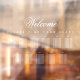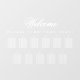 All text is white. The word Welcome is written in an elegant calligraphic script, the rest in caps. The tables are on 2 rows. Above them and under the word Welcome, there is the message "Please find your seat!".