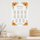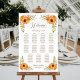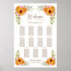 This sunflower and rose floral seating chart will help your guests find their table. It is suitable for a wedding with 11 tables and up to 110 guests.