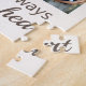 Modern and unique 11"x14" white family photo keepsake puzzle with an 8 photo collage template and text, "Side by side or miles apart, our family is always connected by heart."