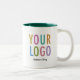 Easily personalise our ceramic two tone mug with your company logo, recipient name, or other custom text. You can reduce the cost of disposable cups and be green by giving employees their own reusable mug. Available in 11 ounce with a green inside colour. Also sold in other colours. No minimum order quantity and no setup fee.