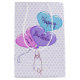Pink, purple, and aqua heart balloon bouquet on pastel hearts on a white background for 11th birthday.