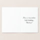 The front of this formal and elaborate birthday-themed foil greeting card design features the message “Happy 11th Birthday,” in ornate script style text. The inside has an editable birthday greeting message, or could perhaps be cleared and left blank if a message is to be written by hand instead. An opulent, personalised birthday greeting card like this might be used to acknowledge somebody’s eleventh birthday. [~Z0000555]