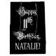 This formal and elegant birthday-themed giftbag design features the message “Happy 11th Birthday,” in luxurious script style text, on a black coloured background. It also features a customisable recipient name. A gift bag like this might be used when giving a gift or present in honour of somebody’s eleventh birthday. [~Z0000557]