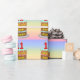 This cheerful and joyful birthday themed wrapping paper design features a cartoon-style depiction of a three-tier birthday cake having number-shaped candles on top showing the age “11“, along with the message “HAPPY 11TH BIRTHDAY,”, and an editable recipient name. The background features a multicolored pastel rainbow spectrum inspired gradient pattern. Wrapping paper like this might be a fun way of wrapping a birthday present or gift being given to somebody who is celebrating their eleventh birthday. [~Z0000622]