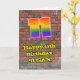 This vibrant and exciting urban graffiti and street art inspired birthday greeting card design features a large number “11” having a colourful rainbow spectrum gradient inspired pattern. It also features the message “Happy 11th Birthday,”, and an editable name. The background of the front features a brick wall pattern. The inside features a customisable birthday greeting message, or could perhaps be cleared and left blank if a message is to be written by hand instead. A colourful, customisable birthday greeting card like this might be used to acknowledge somebody’s eleventh birthday. [~Z0000586]