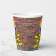 This fun and exciting urban graffiti and street art themed birthday paper cup design features a large number “11” with a colourful rainbow spectrum gradient inspired pattern, along with the message “Happy 11th Birthday,”, and a personalised name. The background has a brick wall pattern. Colourful, vibrant paper cups like this might be fun to use at a birthday celebration being held to honour somebody’s 11th birthday. [~Z0000543]