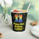 This joyful and cheerful music themed birthday paper cup design features a large number “11” with a rainbow spectrum gradient inspired pattern, along with the message “Happy 11th Birthday,”, and an editable name. The background features a colourful music notes and symbols pattern. Vibrant, colourful paper cups like this might be fun to have at a birthday party being held in celebration of somebody’s 11th birthday. [~Z0000541]