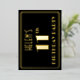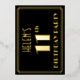 The front of this vintage-look eleventh birthday celebration/party foil invitation features an editable name, a large art deco look inspired number “11th”, the message “BIRTHDAY PARTY”, and a border pattern consisting of lines. The background of the front is coloured black by default, but it can be customised to a different colour if desired. The back features personalised details about the event, such as the date, time, venue, and any other important information. Elegant, luxurious, customisable invitations like these might be used to invite guests to a birthday gathering/party being held in celebration of somebody’s 11th birthday. [~Z0000591]