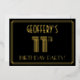 The front of this 1920s-1930s style inspired eleventh birthday party/celebration foil invitation features a custom name, a large art deco style inspired number “11TH”, the message “BIRTHDAY PARTY!”, and a border pattern consisting of lines. The front also features a black-coloured background by default, but it can be customised to a different colour if desired. The back features personalised details about the event, such as the date, time, location, and any other relevant information. Elegant, luxurious, customisable invitations like these might be used to invite guests to a birthday celebration being held in celebration of somebody’s 11th birthday. [~Z0000590]