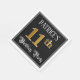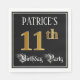 This ornate and opulent birthday-themed paper napkin design features a personalised name and the message “11th Birthday Party”. The large number “11th” has an imitation/faux gold-inspired colouring pattern, the words “Birthday Party” are in luxurious script-style text, and the background is coloured black by default (although it can be customised). Elegant, luxurious paper napkins like this might be useful at a birthday party being held to celebrate somebody’s eleventh birthday. [~Z0000565]