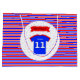 This 11th birthday gift bag for both boys and girls is brightly coloured with a background of red and blue stripes. Add the name of the birthday girl or boy to personalise it. The red birthday banner declares "BIRTHDAY" in black capital letters - or this too can be edited. Matching striped tissue paper is also available in the collection.