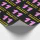 This joyful and fun birthday-themed wrapping paper design features a large number "11" with a light pink and dark pink striped pattern containing heart shapes. It also features the birthday greeting message "Happy 11th Birthday,", and a customisable recipient name. Birthday themed wrapping paper like this might be used when giving a gift or present in celebration of somebody’s 11th birthday. [~Z0000435]