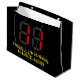 This silly and nerdy birthday-themed gift bag design features a large number "11" with a red seven segment digital display inspired appearance, along with the message "Happy 11th Birthday," and a customisable name in nerdy retro style yellow text, on a black coloured background. Personalised gift bags like this might be used when wrapping gifts or presents being given to somebody who is celebrating their eleventh birthday. [~Z0000389]