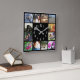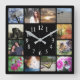 12 Family Multi Photo Collage Square Black Modern Wall Clock