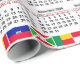 12 month French calendar of the year 2025 with flags of the whole world with flags of the whole world