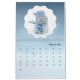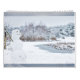 This calendar features an adorable snowman on each page with scenery behind the calendar grid.