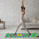 Enjoy this abstract yoga mat with a 12 petal yellow flower centre. It is geometric with vibrant colours giving balanced energy and harmony.