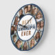 Celebrate the "Best Grandpa Ever" with this unique, personalised wall clock! Featuring a modern typography design, this clock allows you to showcase 12 cherished photos of the grandkids—one for every hour. It’s the perfect, heartwarming photo collage gift that keeps every moment in focus. Ideal for Grandpa's office, kitchen, or den, making it a memorable keepsake he’ll treasure forever. Easily upload your family photos to create a timeless piece of home decor. All colours are editable. © Kimbellished, LLC