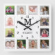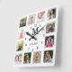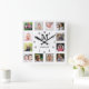 12 Photo Collage Family Name Monogram Black White Square Wall Clock