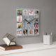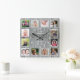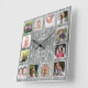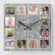 12 Photo Collage Family Name Rustic Grey Wood Square Wall Clock