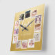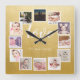 12 Photo Collage Personalized Gold Square Wall Clock