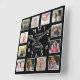 12 Photo Collage Template Family Name Quote Black Square Wall Clock