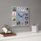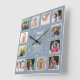 12 Photo Collage Time With Family Quote Dusty Blue Square Wall Clock