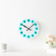 A stylish clock face with the numbers placed inside circular colour spots in each hour position. Also available in other colours.