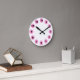A stylish clock face with the numbers placed inside circular colour spots in each hour position. Also available in other colours.