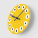 A stylish clock face with the numbers placed inside circular color spots in each hour position. Also available in other colors.